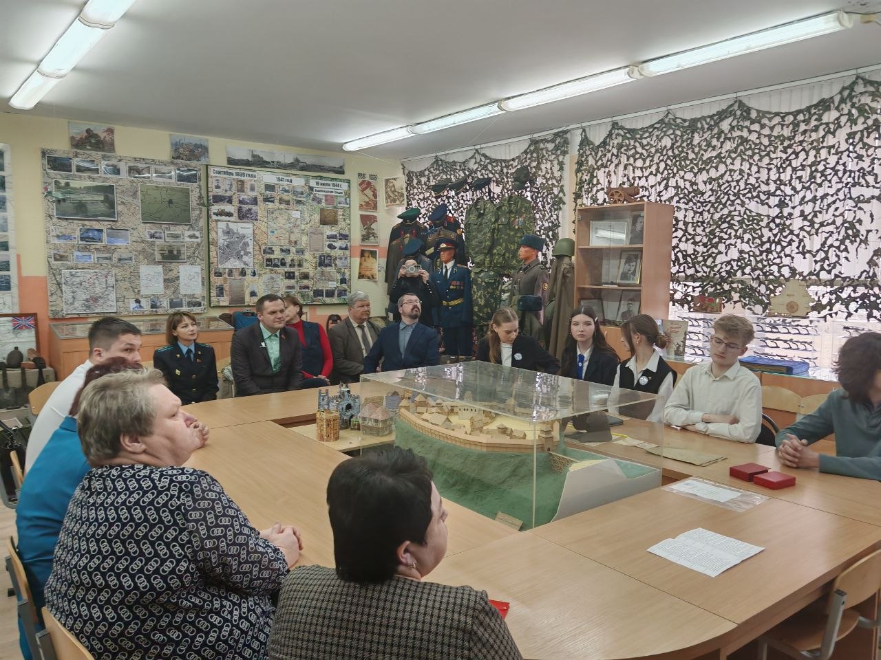 О механизмах взаимодействия с ветеранскими организациями рассказали председатель и ответственный секретарь Гродненской городской организации ветеранов Александр Николаевич Родионов. Директор гимназии № 4 Анна Александровна Огурцова и учитель истории этого же учреждения Дмитрий Владимирович Лютик поделились опытом использования музейного пространства и архитектурной среды в образовательном процессе, а также продемонстрировали возможности реконструкции боев в рамках поисковой деятельности.